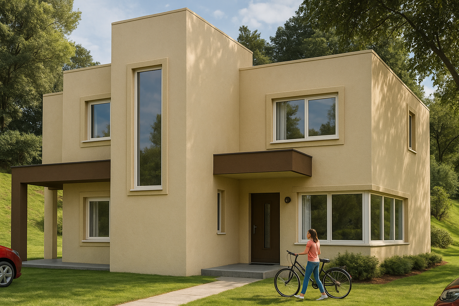 La terraza de acceso común trasera, al igual que toda la casa, prioriza visuales hacia el jardin, ya que los retiros laterales son bastantes acotados.